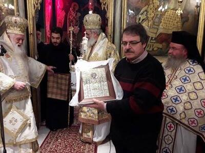 Έτσι, προσέφερε κάποια αναμνηστικά (κατά σειρά) στον Σεβασμιώτατο Μητροπολίτη Βρεσθένης κ. Θεόκλητο, τους Πρωτοπρεσβύτερους π. Χρήστο Ρέλλα (Επίτιμος Γενικός Αρχιερατικός Επίτροπος Ιεράς Μητροπόλεως) και π. Ιωάννη Πετρόπουλο (Γενικός Αρχιερατικός Επίτροπος Ιεράς Μητροπόλεως), τον Αρχιερατικό Επίτροπο Συμπολιτείας π. Λεωνίδα Τσώνη, τον επί σειρά ετών οδηγό του, Νικόλαο Πανούτσο, τον τ. Λυκειάρχη Αθανάσιο Μπιλάλη, τον Πρωτοσύγκελο της Ιεράς Μητροπόλεως, Αρχιμανδρίτη Ιωακείμ Βενιανάκη και τον εκπαιδευτικό Τάκη Σπηλιόπουλο ως υπεύθυνο του ραδιοφωνικού σταθμού «Διακονία και Μαρτυρία», όπως αναφέρει το δελτίο Τύπου.