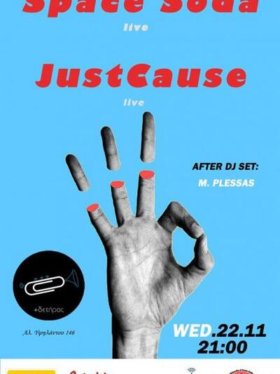 Την Τετάρτη 22 Νοεμβρίου στις 21:00 ο Συνδετήρας φιλοξενεί τους Space Soda και τους JustCause, δυο σημαντικά εγχώρια Αγγλόφωνα γκρουπ με έδρα τους την Πάτρα.