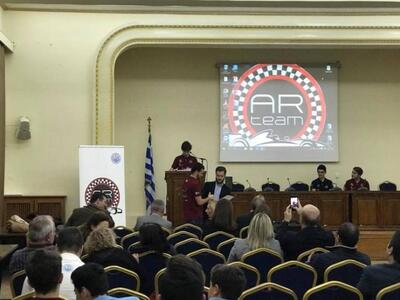 Χαιρετισμό έκανε ο υπεύθυνος καθηγητής από τα Αρσάκεια σχολεία, ο πρόεδρος του επιμελητηρίου, Πλάτωνας Μαρλαφέκας που είναι δίπλα στην προσπάθειά τους, ο Αντιπεριφερειάρχης Γρηγόρης Αλεξόπουλος και ο καθηγητής του εργαστηρίου LMS του τμήματος Μηχανολόγων του Πολυτεχνίου της Πάτρας, Δημήτρης Μούρτζης, που στηρίζει τεχνικά την ομάδα.