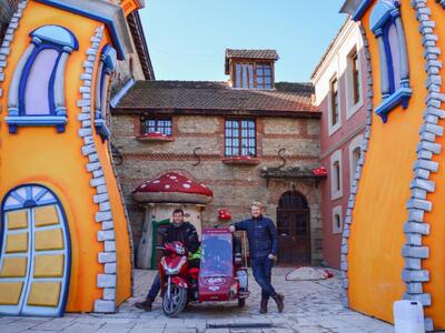 Το περίεργο όχημα που ταξιδεύουν είναι ένα ιδιαίτερο σκούτερ με έξτρα θέση για να ξεκουράζεται ο συνοδηγός. Σίγουρα κάπου θα τους συναντήσετε αυτές τις μέρες.