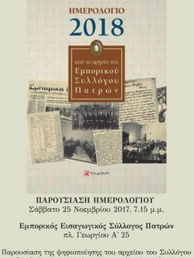 Ξεχωριστή ήταν η εκδήλωση του Εμπορικού και Εισαγωγικού συλλόγου της Πάτρας το περασμένο Σάββατο 25/11 το απόγευμα όπου παρουσιάστηκε η δουλειά ψηφιοποίησης σε συνεργασία με την ΕΣΕΕ – Εθνική Συνομοσπονδία Εμπορίου, του αρχείου και ιστορικού υλικού του συλλόγου (έχει ήδη ολοκληρωθεί σε ποσοστό άνω του 60% και προχωρά με εντατικούς ρυθμούς η ψηφιοποίηση και του υπόλοιπου υλικού). Επίσης έγινε η παρουσίαση του Ημερολογίου του Εμπορικού και Εισαγωγικού Συλλόγου που επιμελήθηκε η δημοσιογράφος Γιώτα Κοντογεωργοπούλου και εξέδωσε «Το Δόντι» του Ανδρέα Τσιλίρα. Την ιδέα για την δημιουργία του ημερολογίου - λευκώματος είχε πριν μερικά χρόνια ο έμπορος Θανάσης Μανθόπουλος.