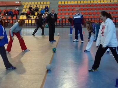 Παρουσίαση power point με θέμα της διδασκαλίας της χειροσφαίρισης και τους τρόπους κατασκευής γηπέδων χάντμπολ στα προαύλια των σχολείων και το δεύτερο μέρος οι καθηγητές των γυμνασίων που συμμετείχαν διδάχτηκαν βιωματικά τα σχολικά παιχνίδια της Χειροσφαίρισης.