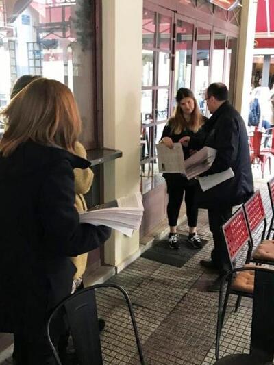 Επίσης, ο επικεφαλής της ΑΕΕΠ και μέλη του συνδυασμού περιόδευσαν χθες στο κέντρο της Πάτρας. Διένειμαν στους συναδέλφους τους το ενημερωτικό υλικό της παράταξης και αντάλλαξαν απόψεις για τις πρωτοβουλίες που ανέλαβε και τις δράσεις που υλοποίησε το Επιμελητήριο Αχαΐας την τελευταία εξαετία.