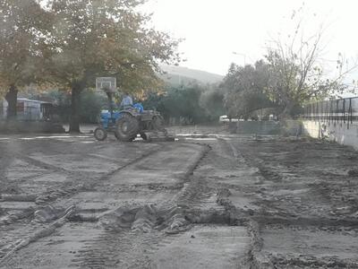 Το σχολείο στο Ζευγαράκι θα μείνει κλειστό γιατί είναι πλημμυρισμένο με λάσπες ίσως για αυτό τα παιδιά του χωριού καβάλησαν ένα τρακτέρ και έπιασαν δουλειά και το καθάριζαν μόνα τους..