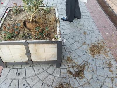 Οι καταστηματάρχες στο σημείο ανέλαβαν μόνοι τους να επανατοποθετήσουν τα φυτά και να τα καλύψουν με χώμα.