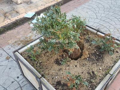 Είκονες που σε κάνουν να απορείς, αντίκρυσαν το πρωί της Τρίτης οι έμποροι που δραστηριοποιούνται στην Αγ. Νικολάου στο τμήματα της από την Μαιζώνος και εως της Κορίνθου. Κάποιος ή κάποιοι τα έβαλαν με τα φυτά που πρόσφατα (πριν από περίπου 2 μήνες) τοποθετήθηκαν στις μεγάλες τετράγωνες ζαρντινιέρες, μαζί με πολύχρωμα λουλούδια.