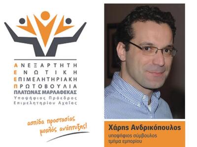 Στις Επιμελητηριακές εκλογές θέτει υποψηφιότητα με τον συνδυασμό του Πλάτωνα Μαρλαφέκα, στο Εμπορικό Τμήμα. Για την υποψηφιότητά του, δήλωσε στο thebest.gr: «Πιστεύοντας ότι με την συμμετοχή μου μπορώ να συμβάλω κι εγώ στην προσπάθεια που έχει ξεκινήσει ο Πλάτωνας Μαρλαφέκας για την ανάταξη της τοπικής μας οικονομίας και τη δημιουργία των κατάλληλων συνθηκών για την ανάπτυξη των τοπικών επιχειρήσεων, αποφάσισα να συμμετέχω στις προσεχείς εκλογές του Επιμελητηρίου (9, 10 και 11 Δεκεμβρίου 2017) ως υποψήφιος σύμβουλος με την παράταξη Ανεξάρτητη Ενωτική Επιμελητηριακή Πρωτοβουλία».