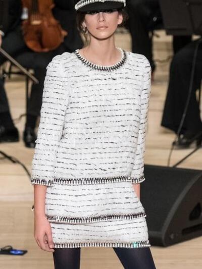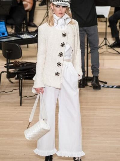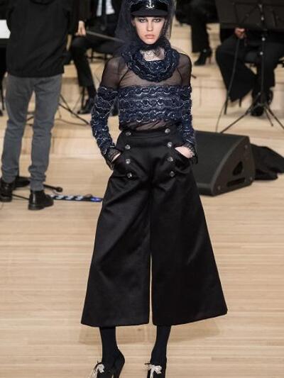 Αυτή τη φορά η επίδειξη παρέπεμπε σε μουσικό κονσέρτο (Θυμηθείτε πως σε παλιότερα σόου ο Karl Lagerfeld έχει στήσει καζίνο, σούπερ μάρκετ, αεροδρόμιο, διαδήλωση, ορεινά φαράγγια, καζίνο, εργοστάσιο, παραδεισένιο κήπο, ιταλική συνοικία κ.α.). Επιπλέον πέρα από τη μπάντα που συνόδευε τα μοντέλα γινόταν αναφορά στο ναυτικό παρελθόν του Αμβούργου και στα χρώματα των σπιτιών του. Παρούσες ήταν οι μούσες της Chanel αυτοκρατορίας Κρίστεν Στιούαρτ και Λίλι Ρόουζ Ντεπ, oι φίλες του Lagerfeld Τίλντα Σουίντον, Κορίν Ρόιτφιλντ, που βέβαια καταχειροκρότησαν την κόρη της Σίντι Κρόφορντ και τα ρούχα με τις sixties και θαλασσινές επιρροές. Φαρδιά παντελόνια και ζιπ κιλότ, πολλά μπουκλέ και μίνι με μεταλιζέ και κόκκινες πινελιές και βέβαια δαντέλες και διαφάνειες. Φετίχ το ναυτικό καπέλο.