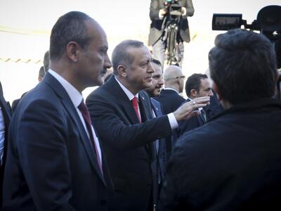 Ο κ. Ερντογάν περπάτησε από το τζαμί ως το σχολείο, και στη διάρκεια της διαδρομής μέλη της μουσουλμανικής κοινότητας είχαν συγκεντρωθεί στις δυο πλευρές του δρόμου, προκειμένου να τον δουν από κοντά και να τον χειροκροτήσουν.
