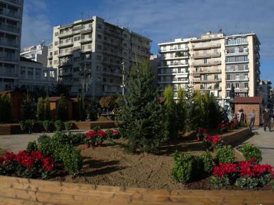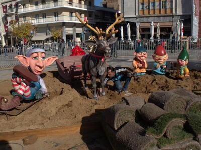 Στην πλατεία Τριών Συμμάχων sτήθηκε ένα μικρό Χριστουγεννιάτικο χωριό, με τα σπιτάκια των ξωτικών, τα οποία το βράδυ θα είναι μαγικά, με κρυφούς φωτισμούς, μετά τη σύνδρομη και του τομέα ηλεκτροφωτισμού.