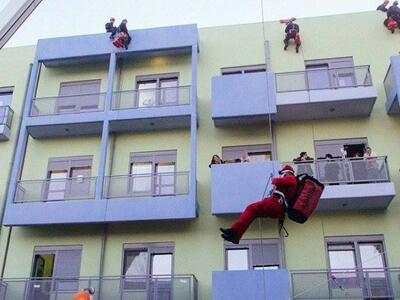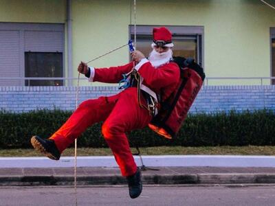 Μια κίνηση ξεχωριστή, συγκινητική και βαθιά ανθρώπινη. Στην Ογκολογική Μονάδα Παίδων άνδρες της ΕΜΑΚ με σχοινιά άρχισαν να κατεβαίνουν από την οροφή του κτιρίου, σταματώντας στα μπαλκόνια των παιδιών που δεν μπορούσαν να κατέβουν στον προαύλιο χώρο για να τους δώσουν τα δώρα τους.