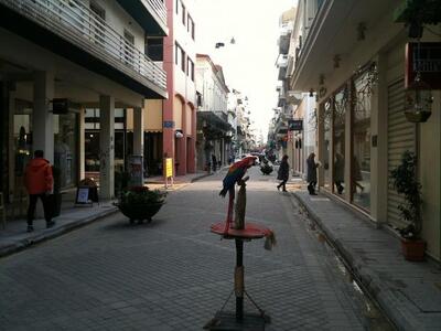 Είναι ίσως ο πιο τυχερός και απολαμβάνει την πεζοδρόμηση της Ρήγα Φεραίου περισσότερο από όλους. Ο γνωστός παπαγάλος ΚΟΚΟΣ, δεν κινδυνεύει πλέον από τα αυτοκίνητα και τα νεύρα οδηγών και περαστικών, που δεν έβλεπαν με συμπάθεια τον ελάχιστο χώρο που καταλαμβάνει.