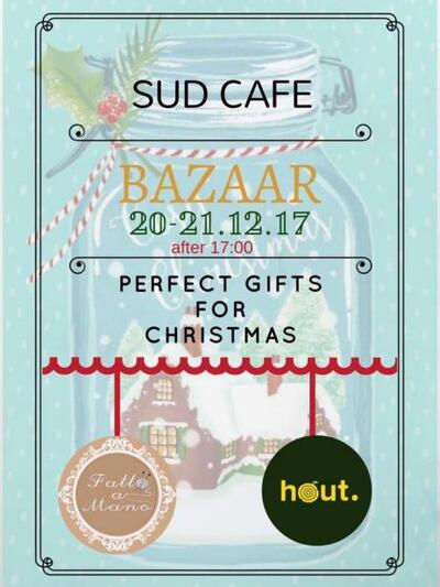 Με χαρά σας περιμένουμε στο χριστουγεννιάτικο bazaar που θα πραγματοποιηθεί την Τετάρτη 20 & Πέμπτη 21 Δεκεμβρίου, μετά τις 5 μ.μ. στο SUD cafe!