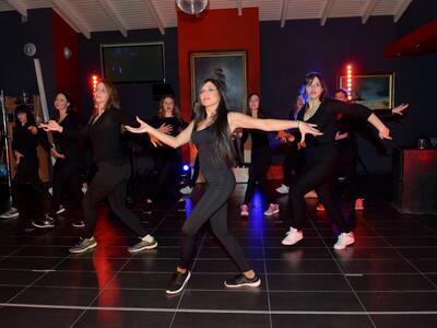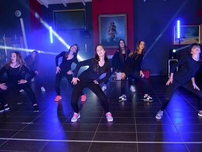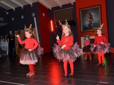 Το πρόγραμμα ξεκίνησε με τη διάσημη salsa “Lloraras-Oscar D’Leon” και συνεχίστηκε με το Χριστουγεννιάτικο “Ρούντολφ το ελαφάκι”, με τις εντυπώσεις να κλέβουν οι στολές των μωρών χορευτριών. Αφού ο κόσμος είχε ζεσταθεί, τη σκυτάλη ανέλαβε το σύγχρονο χορευτικό (Joyce Sims-Come into my life) και το tango από την ταινία «Ταγκό των Χριστουγέννων», ακολούθησε η zumba “Stanga-Sagi Abitbul & Guy Haliva” και ένα ChaCha “Dean Martin-Sway”, με τις χορεύτριες με τις ροζ φούστες.