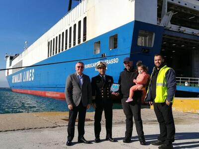 Όπως ανακοίνωσε και το Κεντρικό Λιμεναρχείο "επίσκεψη από τον Κεντρικό Λιμενάρχη Πάτρας Πλοίαρχο Λ.Σ ΚΥΡΙΑΚΟΥΛΟΠΟΥΛΟ Δημήτριο στο πρώτο πλοίο που κατέπλευσε στο λιμάνι της Πάτρας, για το νέο έτος, την Κυριακή 01-01-2018 στις 12.40 Ro/Ro EUROCARGO PATRASSO. Ο κος ΚΥΡΙΑΚΟΥΛΟΠΟΥΛΟΣ συνοδευόμενος από τον ναυτιλιακό πράκτορα Minoan Lines/ Grimaldi Lines κο ΚΟΥΝΑΒΗ Αντώνιο καλωσόρισε το πλοίο και αντάλλαξε ευχές με τον πλοίαρχο ΠΡΟΥΖΟ Μιχαήλ καθώς και το πλήρωμα προσφέροντας ως ανάμνηση της προσέγγισης αυτής τον θυρεό του Κεντρικού Λιμεναρχείου Πάτρας".