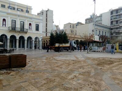 Επίσης ξεστήθηκαν και οι γιορτινές κατασκευές του Δήμου Πατρέων από την πλατεία Τριών Συμμάχων.