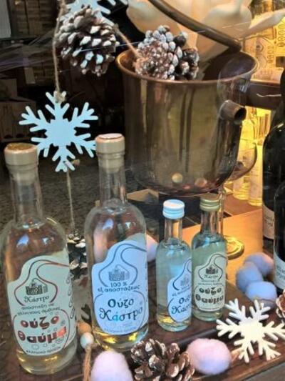 Φυσικά, δε θα μπορούσε να λείπει η Τεντούρα και τα υπόλοιπα λικέρ Κάστρο, το ούζο, το τσίπουρο, τα λουκούμια τεντούρας αλλά και χριστουγεννιάτικα γλυκίσματα.