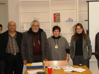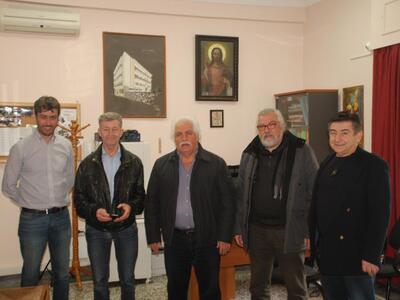 Ο ταμίας του ΠΕΑΚ Πολυχρόνης Θωίδης, ο γραμματέας της Διοικούσας Επιτροπής του Κωντσταντοπούλειου Οίκου Ευγηρίας Δημήτριος Μποϊλές, η πρόεδρος της Διοικούσας Επιτροπής του Κωντσταντοπούλειου Οίκου Ευγηρίας Αναστασία Ταβουλάρη, ο πρόεδρος του ΠΕΑΚ Νίκος Κανελλάκης και ο έφορος του ΠΕΑΚ Αποστόλης Σταθόπουλος