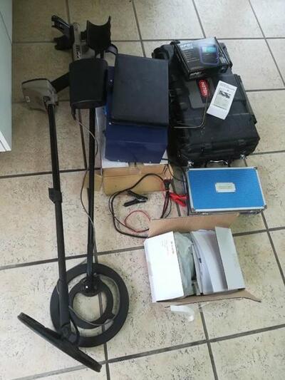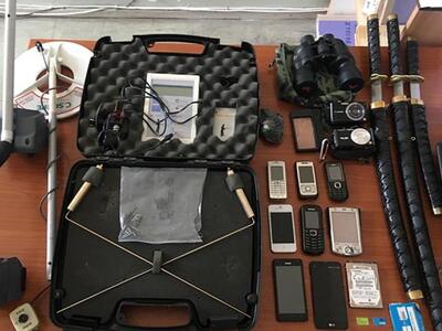 • τέσσερις συσκευές ανίχνευσης μετάλλων, μεταλλικές βέργες ραβδοσκοπίας και ένας φορητός ανιχνευτής