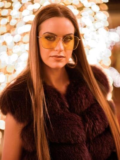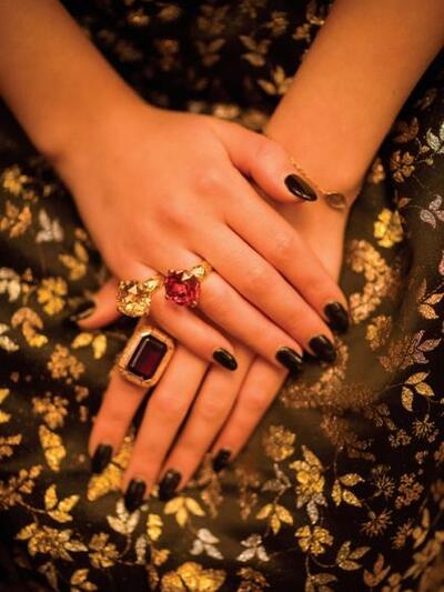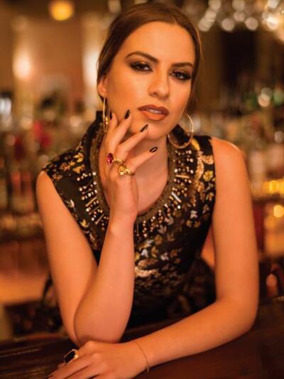 Τα κοσμήματα είναι Fotios Katraouras και Swarovski Crystal Stones, τα παπούτσια Classico, οι γούνες "Αγνή", το μάξι μαύρο φόρεμα Moma, και τα υπόλοιπα ρούχα Collective, τα γυαλιά "Οπτική Γωνία".