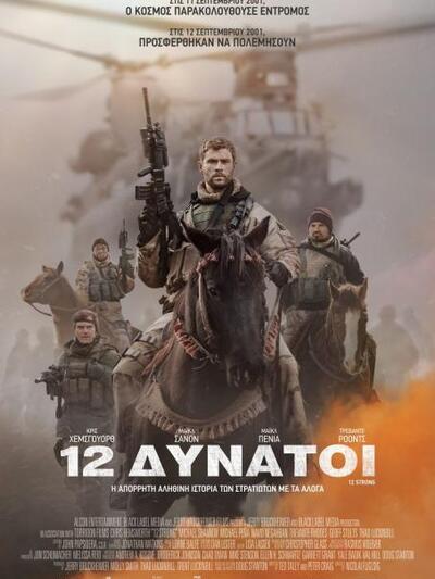 Ταυτόχρονα με την έξοδο του στις ΗΠΑ θα δούμε και στην Ελλάδα από την Πέμπτη 18 Ιανουαρίου 2018 το φιλμ «12 Strong – 12 Δυνατοί» που περιγράφει την απόρρητη, αληθινή ιστορία των στρατιωτών με τα άλογα, αμέσως μετά το φοβερό τρομοκρατικό χτύπημα της 11ης Σεπτεμβρίου του 2011 στους Δίδυμους Πύργους της Νέας Υόρκης. Η ταινία βγαίνει στην Ελλάδα σε διανομή της Tanweer και πρωταγωνιστούν οι Κρις Χέμσγουερθ, Μάικλ Σάννον, Μάικλ Πένια, Τρεβάντε Ρόουντς, Έλσα Πατάκι και Γουίλιαμ Φίχτνερ.