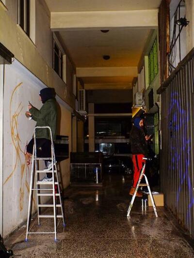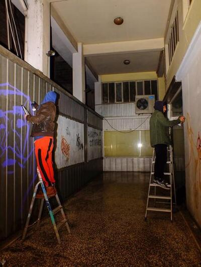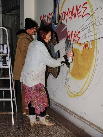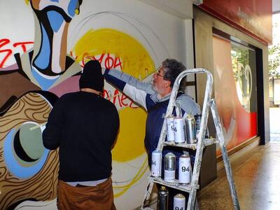 Σε πρώτη φάση το άσχημο, γκρίζο και μουτζουρωμένο περιβάλλον, ομόρφυνε χάρις στην εικαστική παρέμβαση στους τοίχους.