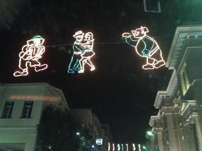 Στο μεταξύ από το βράδυ του Σαββάτου άναψε ο καρναβαλικός διάκοσμος στο κέντρο της πόλης χωρίς ... εκπλήξεις όμως αφού τα καρναβαλικά στοιχεία παραμένουν ίδια τα τελευταία χρόνια.