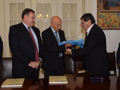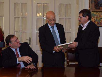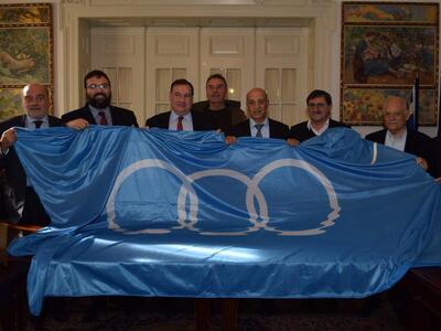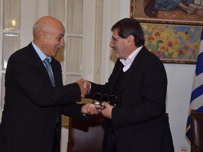 Αμέσως μετά, ανταλλάχτηκαν δώρα, ενώ ο κ. Addadi, παρέδωσε στον Δήμαρχο Πατρέων, τη σημαία των Παράκτιων Μεσογειακών Αγώνων.