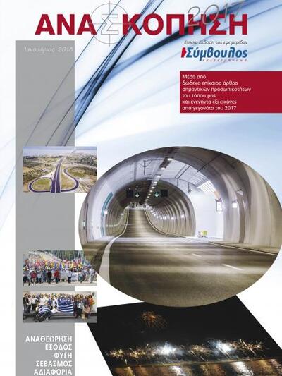 Η έκδοση ΑΝΑΣΚΟΠΗΣΗ 2017 της εφημερίδας «Σύμβουλος Επιχειρήσεων» θα κυκλοφορήσει την Παρασκευή 26 Ιανουαρίου. Φιλοξενεί 12 επώνυμα κείμενα που προσεγγίζουν τις  λέξεις-κλειδιά που προτάθηκαν στους φετινούς αρθογράφους του τεύχους, που είναι οι εξής: Αναθεώρηση, Έξοδος-Φυγή, Σεβασμός-Αδιαφορία.