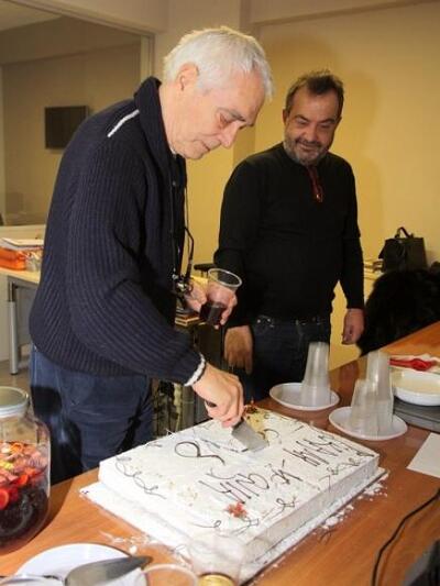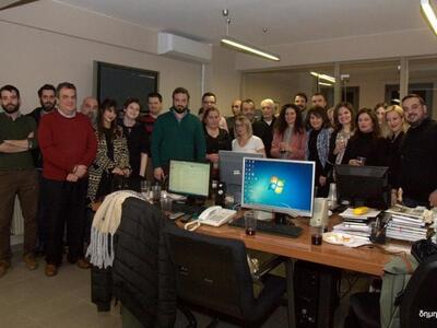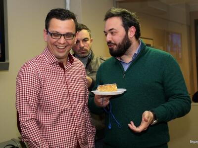 Ηταν ένα πολύ κρύο βράδυ Πέμπτης αλλά η αίθουσα στα ενδότερα του portal ήταν πολύ… θερμή. Η βασιλόπιτα του ζαχαροπλαστείου «Εντελβάις» γευστικότατη και η κατανάλωση της σανγκρία από το «Κελλάρι» ταχύτατη. Είπαμε όλα τα τελευταία «νέα» από κοντά – τα «δικά μας», της πόλης και άλλα πολλά. Και του χρόνου!