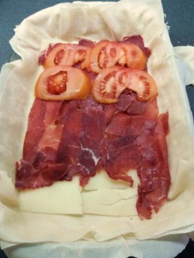 Μπορείτε να χρησιμοποιήσετε φύλλο κρούστας και ότι τυρί κίτρινο επιθυμείτε.