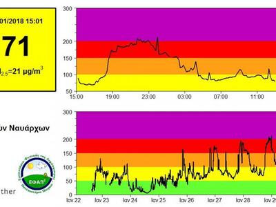 Συγκεκριμένα ο σταθμός ατμοσφαιρικής ρύπανσης στη Τριών Ναυάρχων κατέγραψε ότι η ατμόσφαιρα ήταν «πολύ ανθυγιεινή». Η κατάσταση αυτή βρίσκεται μόλις μία κλίμακα κάτω από το ανώτατο όριο της κατάστασης του αέρα και η παρατεταμένη έκθεση σε τέτοιες συνθήκες, μπορεί να προκαλέσουν σοβαρά προβλήματα στον ανθρώπινο οργανισμό.