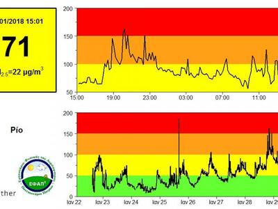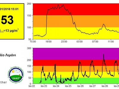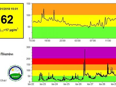 Χαρακτηριστικές είναι οι μετρήσεις του δίκτυο Αιθέρας, που είναι ένα σύστημα παρακολούθησης και καταγραφής των αιωρούμενων σωματιδίων, στο πλαίσιο των ερευνητικών δραστηριοτήτων του Εργαστηρίου Φυσικής της Ατμόσφαιρας του Πανεπιστημίου Πατρών.