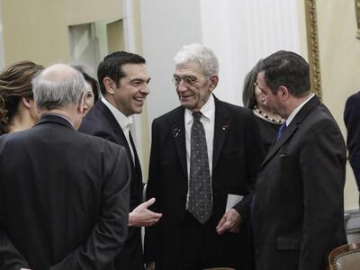 Τα βλέμματα μάλιστα έκλεψε το πηγαδάκι που σχημάτισαν σε χαλαρούς τόνους ο Αλεξης Τσίπρας, ο Κυριάκος Μητσοτάκης, ο Δημήτρης Αβραμόπουλος και ο Γιάννης Μπουτάρης, από το οποίο δεν έλειψαν τα έντονα γέλια…