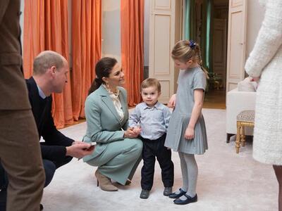 Τον δεύτερο τη τάξει διάδοχο του βρετανικού θρόνου και τη δούκισσα του Κέιμπριτζ υποδέχθηκαν στο αεροδρόμιο Gardermoen του Όσλο ο διάδοχος του νορβηγικού στέμματος Χάακον και η πριγκίπισσα Μέτε Μάριτ. Κατόπιν συναντήθηκαν με πολίτες που είχαν συγκεντρωθεί αψηφώντας το τσουχτερό κρύο, οι οποίοι κρατούσαν βρετανικές σημαίες για να τους καλωσορίσουν.