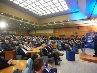 Στον Πύργο μίλησε το απόγευμα της Πέμπτης ο πρόεδρος της Νέας Δημοκρατίας, Κυριάκος Μητσοτάκης. Η αίθουσα της εκδήλωσης ήταν κατάμεστη από φίλους του κόμματος ενώ στο πλευρό του αρχηγού της αξιωματικής αντιπολίτευσης ήταν και η σύζυγός του Μαρέβα.