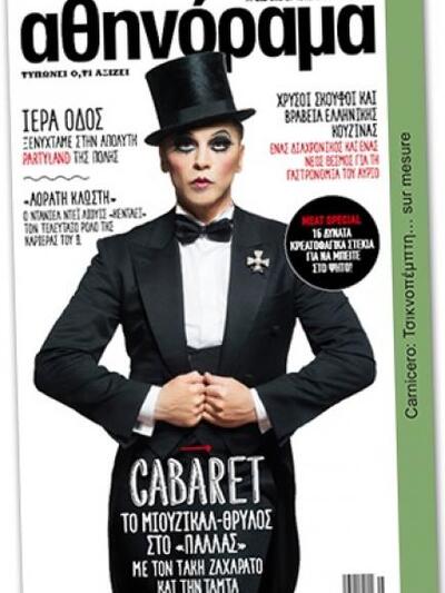 Mε εξώφυλλο τον λαμπερό και ταλαντούχο Πατρινό σώουμαν Τάκη Ζαχαράτο έχει κυκλοφορήσει το περιοδικό Αθηνόραμα (το νέο του τεύχος αυτής της εβδομάδας). Αφορμή φυσικά είναι η πρεμιέρα στο Παλλάς στην Αθήνα της παράστασης «Cabaret» σε σκηνοθεσία Σωτήρη Χατζάκη με τον Τάκη Ζαχαράτο να κρατά το ρόλο του Κομπέρ.