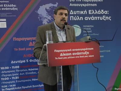 Την ανάγκη ενός κοινού σχεδίου ανάπτυξης από την περιοχή, ρεαλιστικού και εφαρμόσιμου επισήμανε στην ομιλία του στο Αναπτυξιακό Συνέδριο επισήμανε ο Περιφερειάρχης Δυτικής Ελλάδος Απ. Κατσιφάρας. Μάλιστα ο κ. Κατσιφάρας διαφοροποιήθηκε σε αρκετά ζητήματα σε σχέση με την στάση του Δημάρχου Πατρέων Κ. Πελετίδη σημειώνοντας σε μια αποστροφή της ομιλίας του ότι «μόνο ο καταγγελτικός λόγος δεν αποδίδει ως τακτική». Ο Περιφερειάρχης είχε διαφορετική προσέγγιση και στο θέμα του Φράγματος του Πείρου όπου ενώ ο κ. Πελετίδης ζήτησε έναν κρατικό φορέα διαχείρισης, ο κ. Κατσιφάρας αντέτεινε ότι η τοπική αυτοδιοίκηση πρέπει να μπει μπροστά. Από εκεί και πέρα έθεσε μια σειρά μεγάλων ανοικτών ζητημάτων για την Πάτρα και τη Δυτική Ελλάδα όπως: -Οι οδικές υποδομές: Για την Ιονία Οδό επισήμανε ότι υπάρχει η εκκρεμότητα της σύνδεσης του Αγρινίου και η ολοκλήρωσης της Αμβρακίας Οδού.