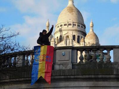 "Η σημαία αυτή βρίσκεται στο δωμάτιό μου στη Μονμάρτη και φέτος για πρώτη φορά βγήκα με αυτή έξω. Μέσα από αυτή την κίνηση ήθελα να δείξω στους δικούς μου ανθρώπους πως αυτό που αγαπάμε μπορούμε να το φυλάμε πάντα μέσα μας, κι ας είμαστε μακριά.