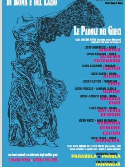 Η εκδήλωση me τίτλο «H Παγκόσμια Ημέρα της Ελληνικής Γλώσσας και Πολιτισμού στη Ρώμη και στο Λάτσιο», έχει ως στόχο τα κλασική σχολεία και τους μαθητές της επαρχίας του Λάτσιο, που θα συναντηθούν στη μεγάλη αίθουσα του Κινηματογράφου Royal, κοντά στο San Giovanni της Ρώμης.