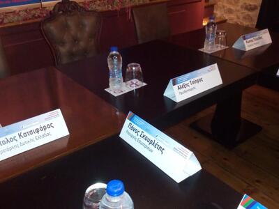 Επίσης ο φακός του thebest.gr εισχώρησε και στην αίθουσα όπου θα λάβει χώρα η σύσκεψη του Πρωθυπουργού με τους Υπουργούς και τους εκπροσώπους των παραγωγικών τάξεων της περιοχής, πριν την ομιλία του.