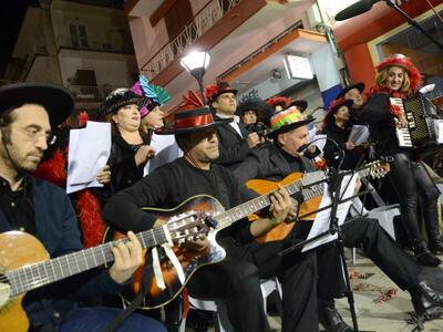 Καντάδες και αξέχαστα παλαιά, παραδοσιακά αποκριάτικα τραγούδια θα ζωντανέψουν με εξωστρέφεια από τις φωνές και εξαμελή ορχήστρα με κιθάρες, ακορντεόν, φυσαρμόνικα και κρουστά αφήνοντας τη γλυκιά, ευγενική, ρομαντική πινελιά τους και ενεργοποιώντας μνήμες του παρελθόντος όταν η Αποκριά και το Καρναβάλι χαρακτηρίζονταν από άλλα ήθη, συνήθειες και ακούσματα.