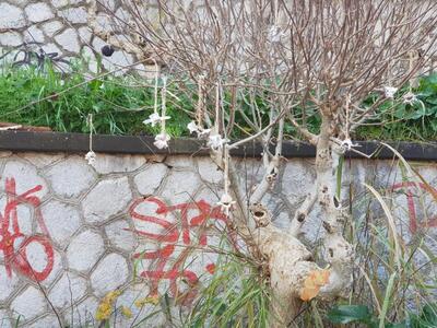 Φαίνεται πως δεν αναλαμβάνει κανείς την πρωτοβουλία για να απομακρύνει τα κόκκαλα νεκρού ζώου που κρέμμονται από κλαδιά δέντρου, σαν σε παγανιστικό τελετουργικό, στο κέντρο της Πάτρας, στις διάσημες σκάλες στο πάνω μέρος της οδού Αγ. Νικολάου και 2 μέτρα από τον ομώνυμο Ιερό Ναό.