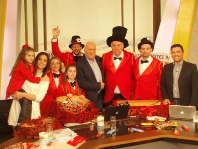 Οι σοκολατορίχτες με επικεφαλής τον Περικλή Δημητρόπουλο έκαναν εμφάνιση μαζί και με τα πανέρια τους γεμάτα σοκολάτα και στην εκπομπή «Happy Day» της Σταματίνας Τσιμτσιλή στον Alpha όπου και εδώ διαφήμισαν το έθιμο του Σοκολατοπόλεμου που καλά κρατεί στην Πατρινή αποκριά. Κι εδώ οι Πατρινοί σοκολατορίχτες γλύκαναν τόσο τους συμπαρουσιαστές και συνεργάτες της Σταματίνας Τσιμτσιλή, Κώστα Φραγκολιά, Τίνα Μεσσαροπούλου, Δημήτρη Παπανώτα και Χρήστο Βαρθαλίτη όσο και τους τηλεθεατές.