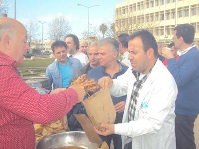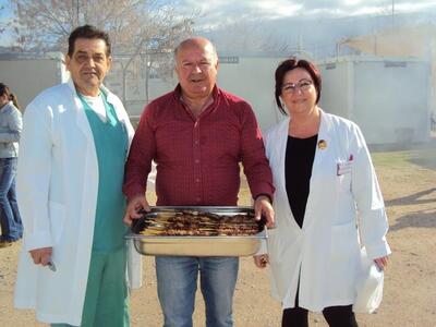 Απ΄αυτές τις ψησταριές, πέρασαν πολλοί εργαζόμενοι, Ιατροί, ο Αντιπεριφερειάρχης Δριβήλας Δημήτρης, ο Διοικητής του Νοσοκομείου «Άγιος Ανδρέας» Σερεμέτης Θεόδωρος, το μέλος του Δ.Σ του Νοσοκομείου Γιάννης Λάμπρου, το Δ.Σ και Εργαζόμενοι του ΝΝ Θώρακος, κ.α, απολαμβάνοντας τα καλοψημένα σουβλάκια, που ήταν προσφορά του Σωματείου «Ο Ιπποκράτης» και το άφθονο καλό κρασί πού ήταν προσφορά του κυλικείου του Νοσοκομείου, αλλά και του Παραγωγού και Εμπόρου Κρασιών Μαυρόγιαννη Σάκη (Περιφερειακού Συμβούλου).
