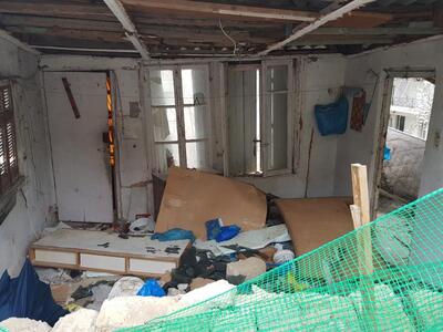 Τα διάφορα είδη που παραμένουν στο εσωτερικό της εγκαταλειμμένης πλέον οικίας δείχνουν πως μέχρι πριν λίγο καιρό κάποιοι έμεναν εκεί και εως τη στιγμή που οι μπουλντόζες οριοθέτησαν το δρόμο.