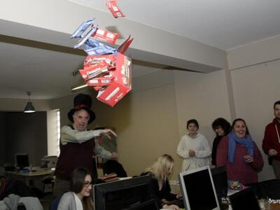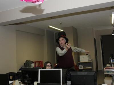 Ο Περικλής Δημητρόπουλος από τους σοκολατορίχτες, βρέθηκε και φέτος στα γραφεία του thebest.gr και μας έκανε να νοιώσουμε για λίγο παιδιά, όπως τότε που τρέχαμε για να πιάσουμε στο τέλος της καρναβαλικής παρέλασης μια σοκολάτα για το… γούρι και φυσικά για τη γλυκά. Η γλυκιά έφοδος του Περικλή Δημητρόπουλου έγινε το μεσημέρι της Δευτέρας και μας αναστάτωσε ρίχνοντάς μας σοκολάτες με τον τρόπο που μόνο οι σοκολατορίχτες γνωρίζουν.