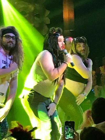 Ο αιγιώτης dj Γιάννης Τζόβολος γνωστός από τη θητεία του σε στέκια διασκέδασης Πάτρας και Αιγιάλειας, πλαισιωμένος από το πληθωρικό του «μπαλέτο» με πατρινούς συνδεδεμένους με το Καρναβάλι, την εστίαση και το εμπόριο (Δ. Φάκαλος, Γ. Μαυριόπουλος, Γ. Κυριακόπουλος, Σπ. Μαλεβίτης, Γ. Μαρκουίζος, Γ. Φραγκονικολόπουλος) φάνηκε από την αρχή πως θα επικρατήσει. Το … συγκρότημα με αποκαλυπτικά street style συνολάκια παρουσίασε το χιτ «Μάντισσα» με την ακριβή κινησιολογία της Μαρίνα Σάττι και με πολύ «ύφος», προκαλώντας τα πιο ενθουσιώδη χειροκροτήματα. (Ταυτόχρονα ο παρουσιαστής υπογράμμιζε τους σωματότυπους γυμναστηρίου των «κοριτσιών»).