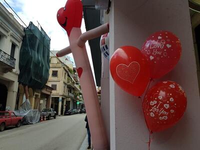 Το κέντρο της Πάτρας έχει πλημμυρίσει. Οχι από την έντονη βροχόπτωση το βράδυ της Τρίτης και τα ξημερώματα της Τετάρτης, αλλά από κόκκινες καρδούλες και αρκουδάκια, σοκολάτες και ατάκες αγάπης. Ο Αγ. Βαλεντίνος άλλαξε τις βιτρίνες των περισσότερων καταστημάτων, που ακόμη κι αν δεν διέθεταν τα της ημέρας, στολίστηκαν σχετικά.