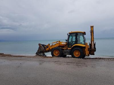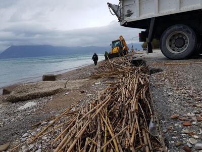 Εξαφανίσθηκε η παραλία, από τα καλάμια που ξέβρασε η θάλασσα την Τετάρτη σχεδόν σε όλο το μήκος της πλάζ της Πάτρας. Τόσο το μεσημέρι της Τετάρτης όσο ακόμη και το πρωί της Πέμπτης, φορτωτές και φορτηγά επιστρατεύτηκαν για τον καθαρισμό της περιοχής.